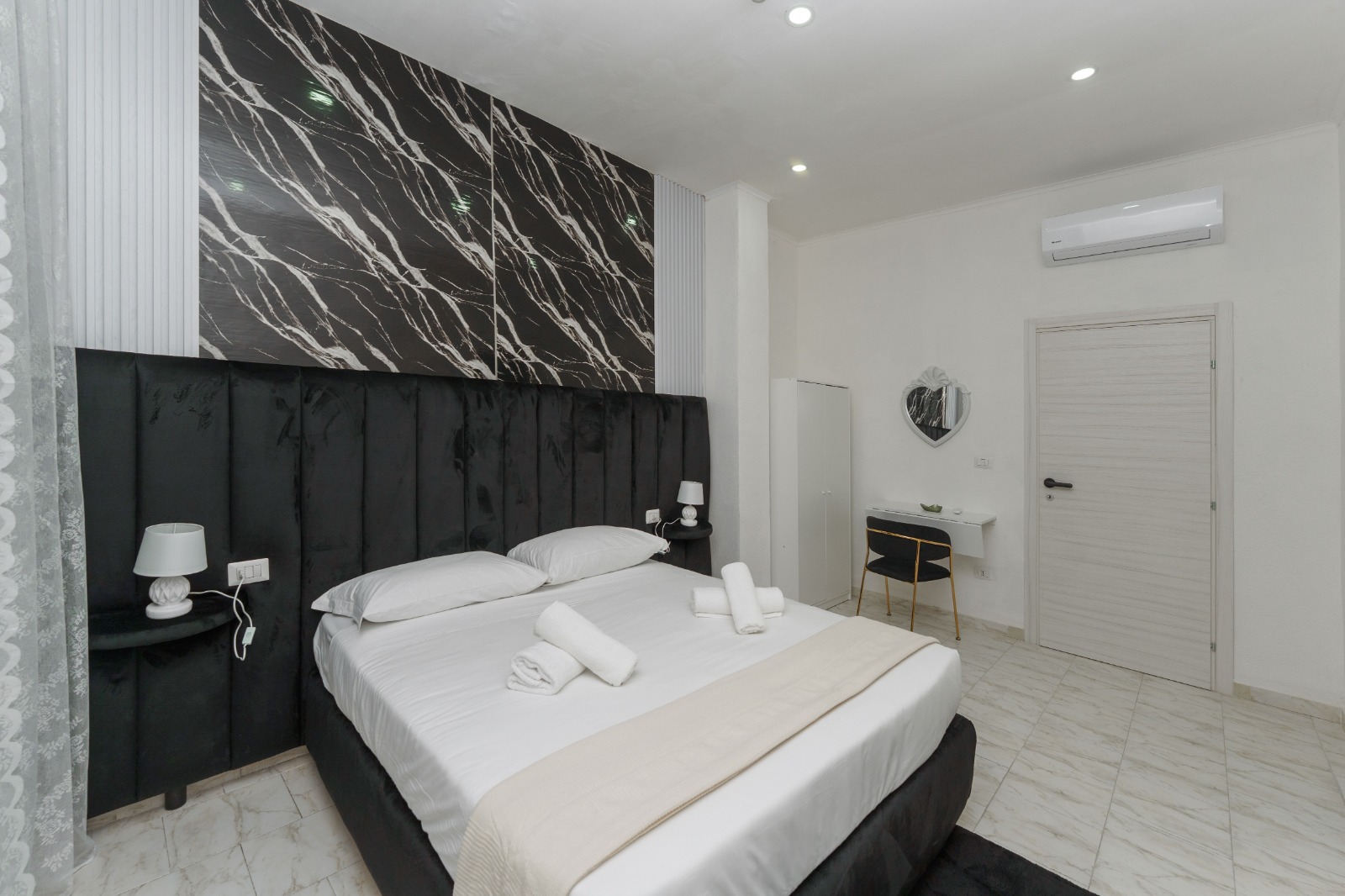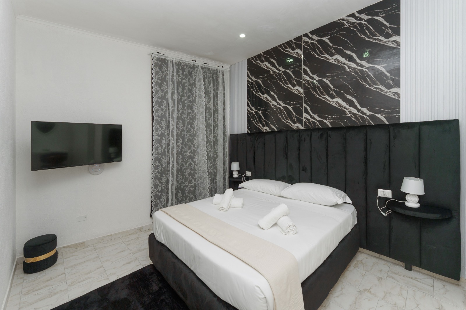 Una camera ampia e luminosa, pensata per coppie che cercano comfort moderno e un’atmosfera accogliente nel cuore di Napoli.